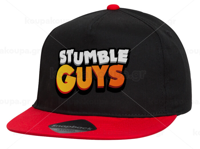 Stumble Guys, Children's Flat Snapback Hat, Black/Red (100% COTTON, CHILDREN'S, UNISEX, ONE SIZE)