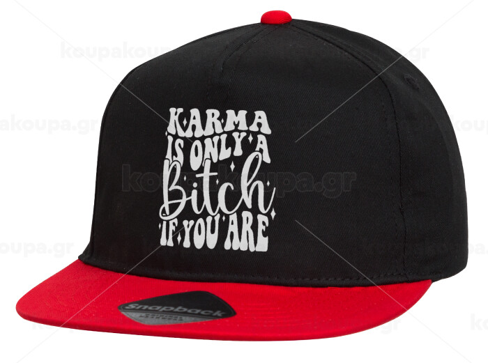 Karma is Only A Bitch if You Are, Children's Flat Snapback Hat, Black/Red (100% COTTON, CHILDREN'S, UNISEX, ONE SIZE)