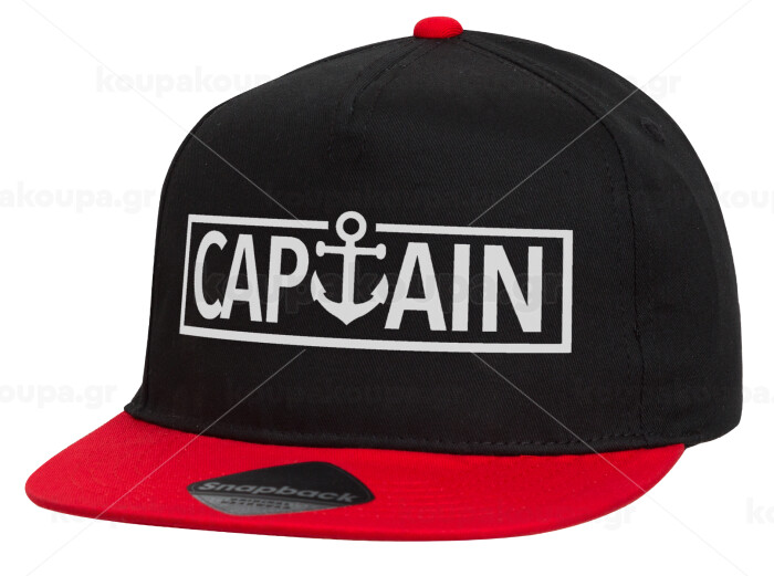CAPTAIN, Children's Flat Snapback Hat, Black/Red (100% COTTON, CHILDREN'S, UNISEX, ONE SIZE)