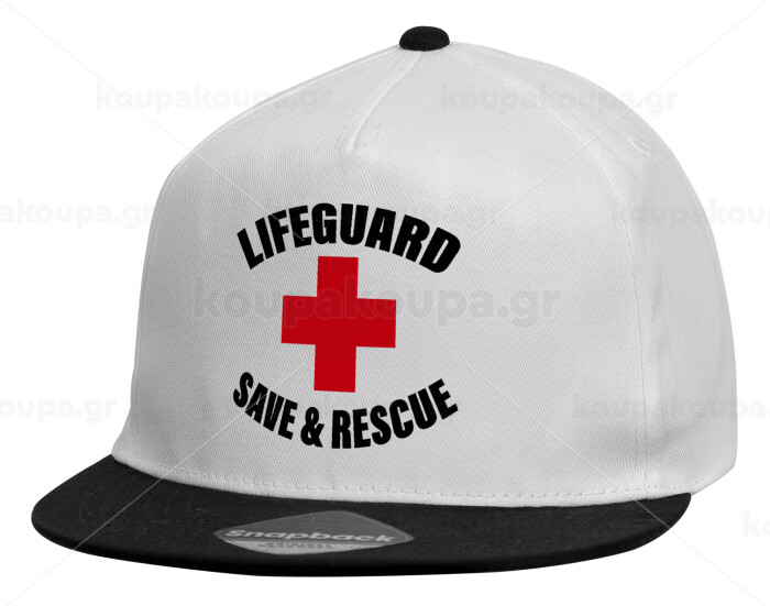 Lifeguard Save & Rescue, Child's Flat Snapback Hat, White (100% COTTON, CHILDREN'S, UNISEX, ONE SIZE)