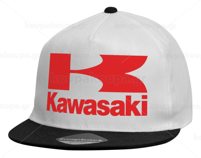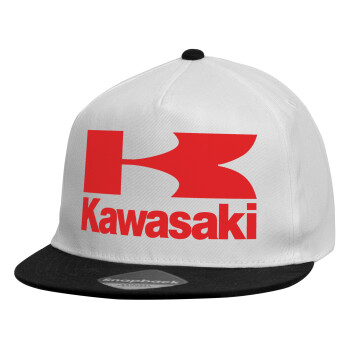 Kawasaki, Child's Flat Snapback Hat, White (100% COTTON, CHILDREN'S, UNISEX, ONE SIZE)