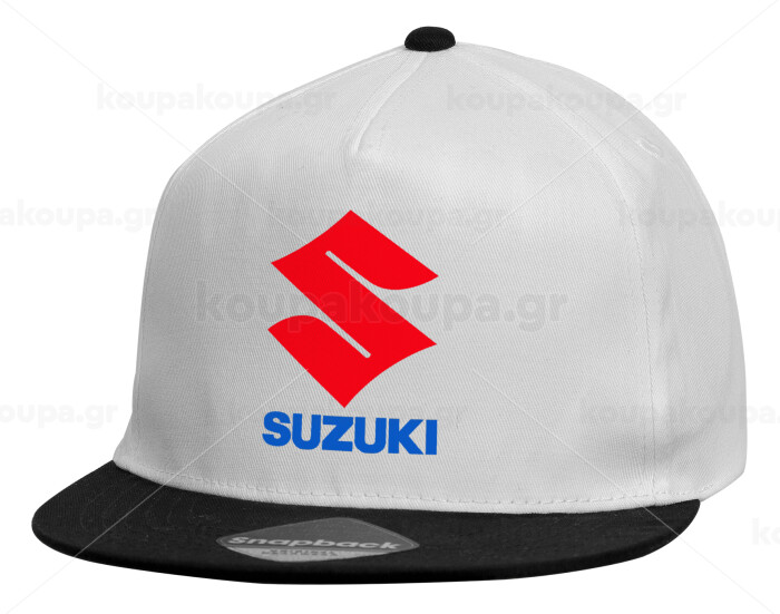 SUZUKI, Child's Flat Snapback Hat, White (100% COTTON, CHILDREN'S, UNISEX, ONE SIZE)