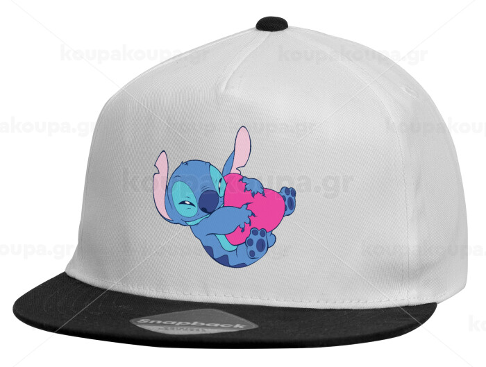Lilo & Stitch hugs and hearts, Child's Flat Snapback Hat, White (100% COTTON, CHILDREN'S, UNISEX, ONE SIZE)