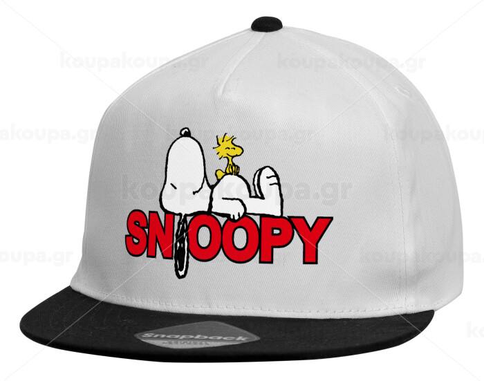 Snoopy sleep, Child's Flat Snapback Hat, White (100% COTTON, CHILDREN'S, UNISEX, ONE SIZE)