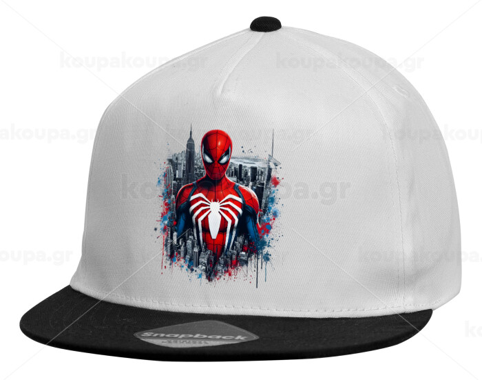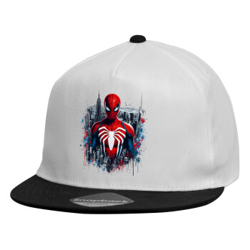 Spiderman City, Child's Flat Snapback Hat, White (100% COTTON, CHILDREN'S, UNISEX, ONE SIZE)