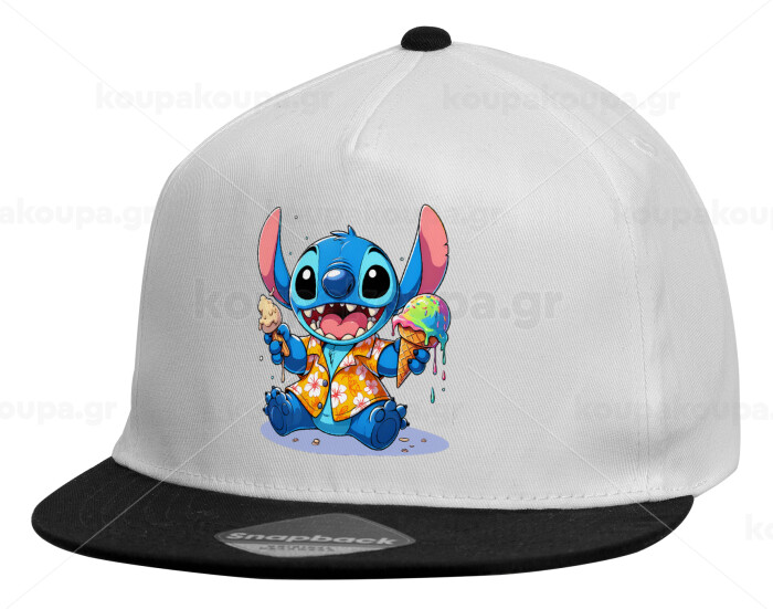 Stitch Ice cream, Child's Flat Snapback Hat, White (100% COTTON, CHILDREN'S, UNISEX, ONE SIZE)