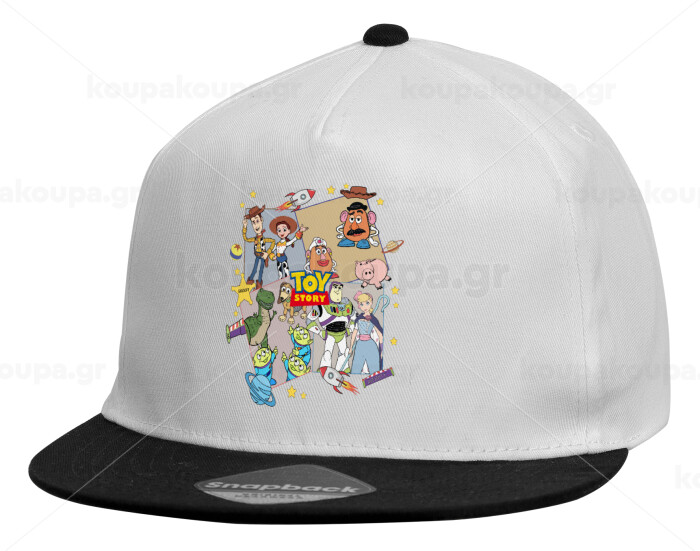 toystory characters, Child's Flat Snapback Hat, White (100% COTTON, CHILDREN'S, UNISEX, ONE SIZE)