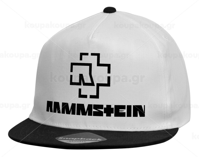 Rammstein, Child's Flat Snapback Hat, White (100% COTTON, CHILDREN'S, UNISEX, ONE SIZE)