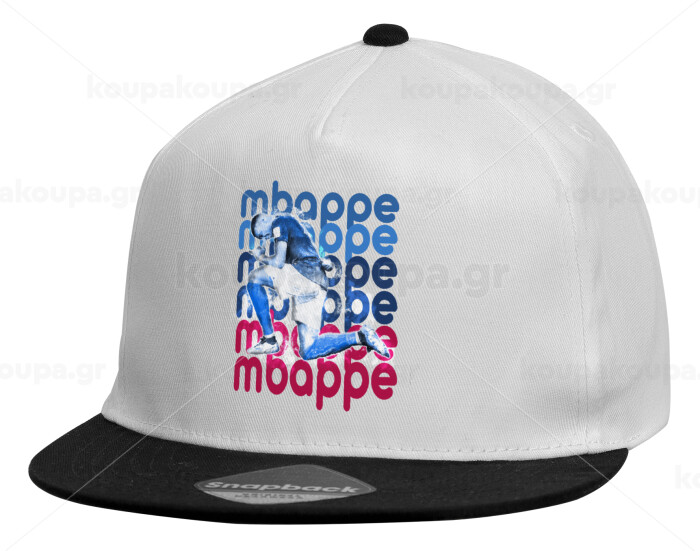 Kylian Mbappé, Child's Flat Snapback Hat, White (100% COTTON, CHILDREN'S, UNISEX, ONE SIZE)