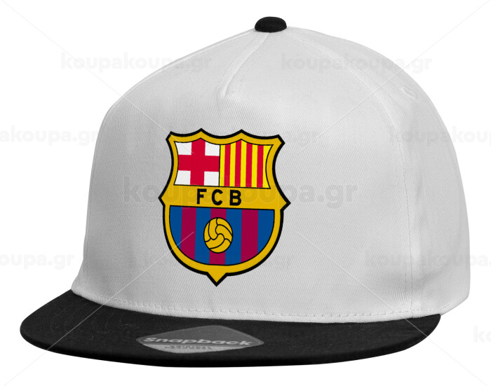 Barcelona FC, Child's Flat Snapback Hat, White (100% COTTON, CHILDREN'S, UNISEX, ONE SIZE)