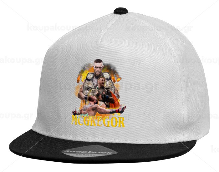 Conor McGregor Notorious, Child's Flat Snapback Hat, White (100% COTTON, CHILDREN'S, UNISEX, ONE SIZE)