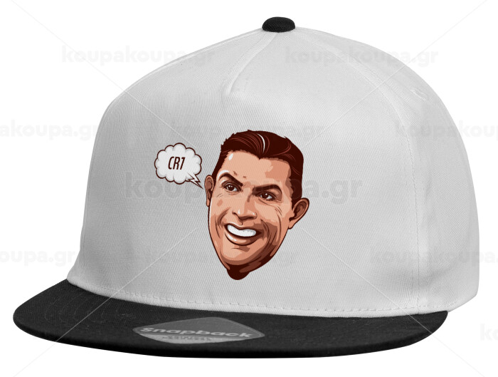 Cristiano Ronaldo, Child's Flat Snapback Hat, White (100% COTTON, CHILDREN'S, UNISEX, ONE SIZE)
