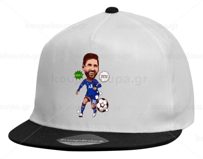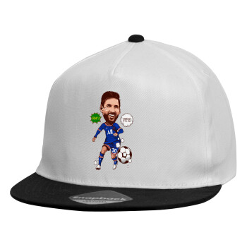 Lionel Messi drawing, Child's Flat Snapback Hat, White (100% COTTON, CHILDREN'S, UNISEX, ONE SIZE)