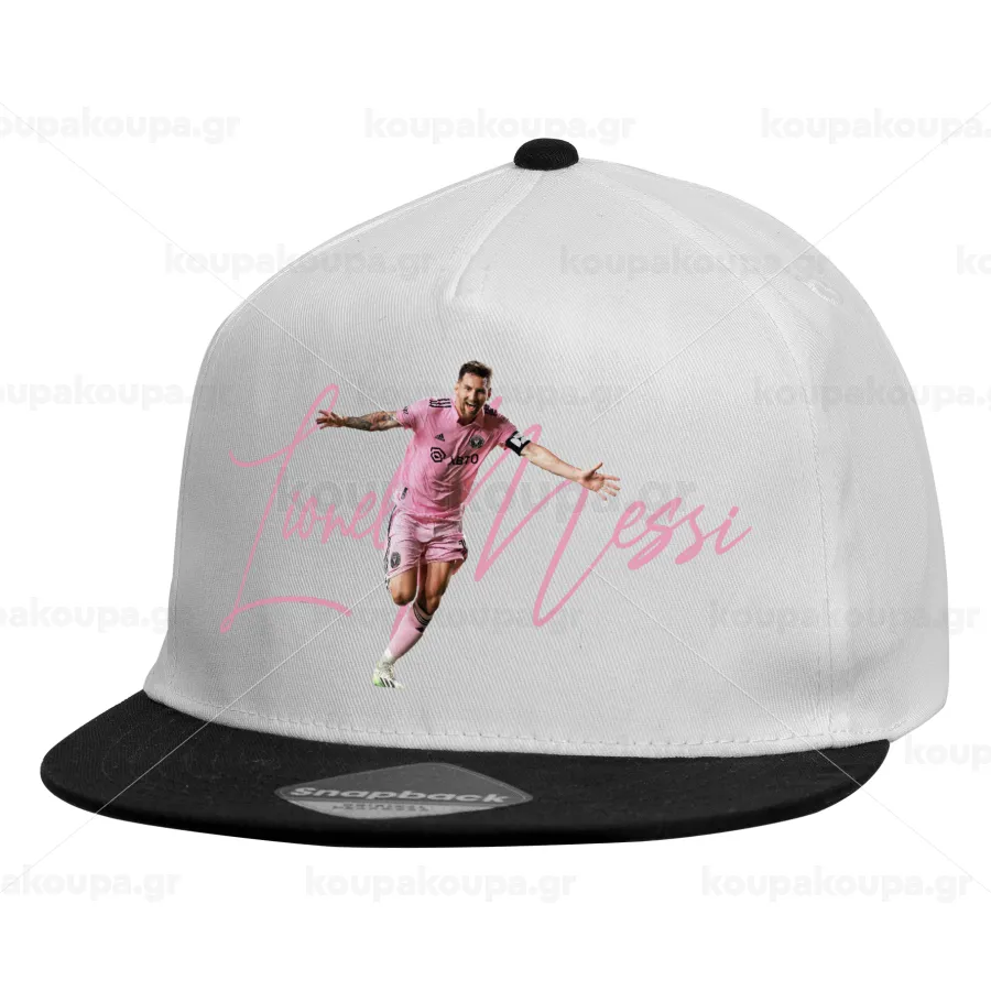 Lionel Messi inter miami jersey, Child's Flat Snapback Hat, White (100% COTTON, CHILDREN'S, UNISEX, ONE SIZE)