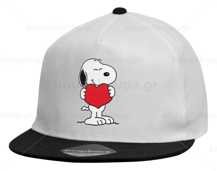 Snoopy takemy heart, Child's Flat Snapback Hat, White (100% COTTON, CHILDREN'S, UNISEX, ONE SIZE)
