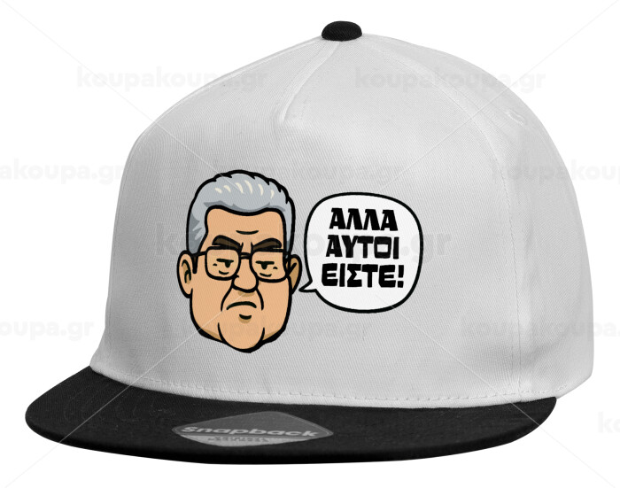 Κουτσούμπας, "Αλλά αυτοί είστε!", Child's Flat Snapback Hat, White (100% COTTON, CHILDREN'S, UNISEX, ONE SIZE)