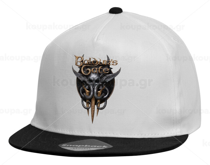 Baldur's Gate, Child's Flat Snapback Hat, White (100% COTTON, CHILDREN'S, UNISEX, ONE SIZE)