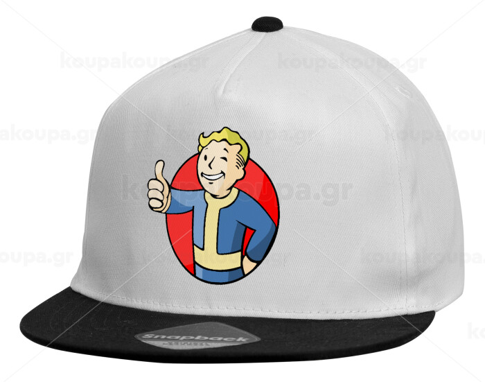 Fallout Vault Boy, Child's Flat Snapback Hat, White (100% COTTON, CHILDREN'S, UNISEX, ONE SIZE)