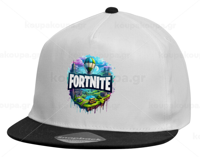 Fortnite land, Child's Flat Snapback Hat, White (100% COTTON, CHILDREN'S, UNISEX, ONE SIZE)