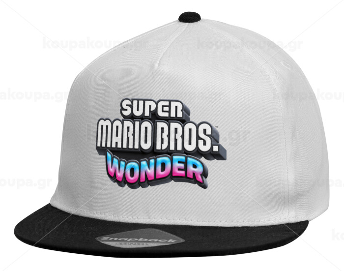 Super mario wonder, Child's Flat Snapback Hat, White (100% COTTON, CHILDREN'S, UNISEX, ONE SIZE)