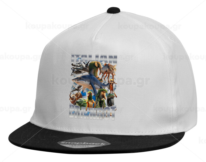 Italian Brainrot, Child's Flat Snapback Hat, White (100% COTTON, CHILDREN'S, UNISEX, ONE SIZE)