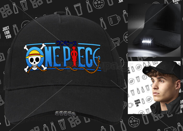 Onepiece logo, Work & Activity LED Light Cap – Perfect for Night & Low Light Conditions (100% COTTON, ADULT, UNISEX)