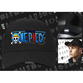 Onepiece logo, Work & Activity LED Light Cap – Perfect for Night & Low Light Conditions (100% COTTON, ADULT, UNISEX)
