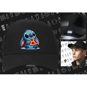 Stitch Pizza, Work & Activity LED Light Cap – Perfect for Night & Low Light Conditions (100% COTTON, ADULT, UNISEX)