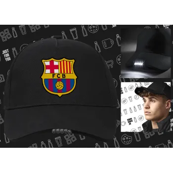 Barcelona FC, Work & Activity LED Light Cap – Perfect for Night & Low Light Conditions (100% COTTON, ADULT, UNISEX)