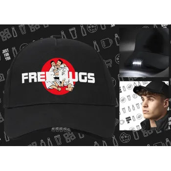 JUDO free hugs, Work & Activity LED Light Cap – Perfect for Night & Low Light Conditions (100% COTTON, ADULT, UNISEX)