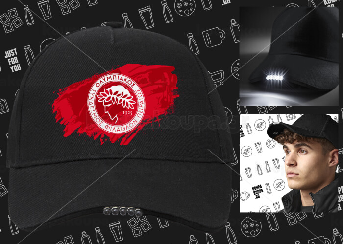 Olympiacos F.C., Work & Activity LED Light Cap – Perfect for Night & Low Light Conditions (100% COTTON, ADULT, UNISEX)