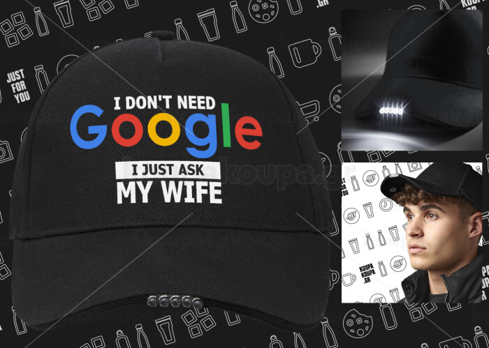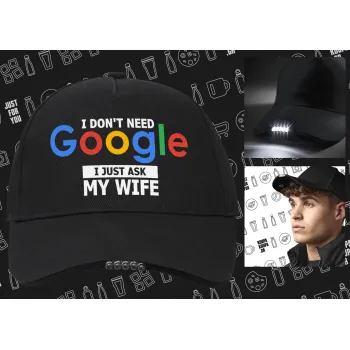 I don't need Google, just ask my WIFE, Work & Activity LED Light Cap – Perfect for Night & Low Light Conditions (100% COTTON, ADULT, UNISEX)