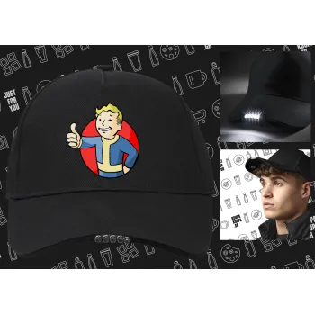 Fallout Vault Boy, Work & Activity LED Light Cap – Perfect for Night & Low Light Conditions (100% COTTON, ADULT, UNISEX)
