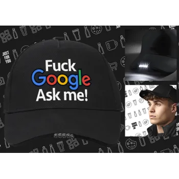 Fuck Google, Ask me!, Work & Activity LED Light Cap – Perfect for Night & Low Light Conditions (100% COTTON, ADULT, UNISEX)
