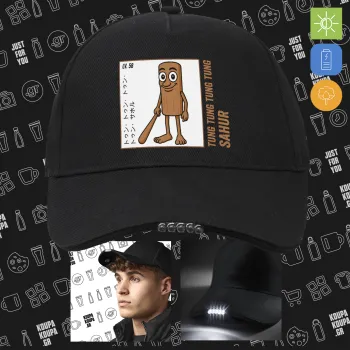 Tung Tung Tung Sahur, Work & Activity LED Light Cap – Perfect for Night & Low Light Conditions (100% COTTON, ADULT, UNISEX)