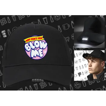 Why Don't You Blow Me Funny, Work & Activity LED Light Cap – Perfect for Night & Low Light Conditions (100% COTTON, ADULT, UNISEX)