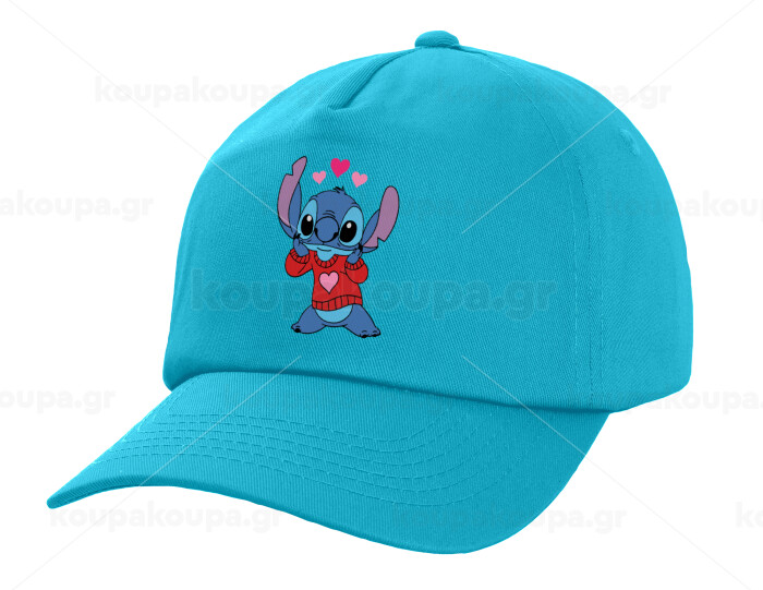 Stitch heart, Adult Baseball Cap, 100% Cotton, Blue (COTTON, ADULT, UNISEX, ONE SIZE)