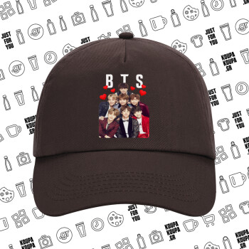 BTS hearts, Adult Baseball Cap, 100% Cotton, Chocolate (COTTON, ADULT, UNISEX, ONE SIZE)