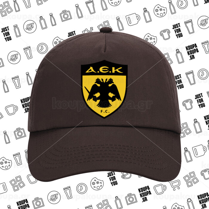 ΑΕΚ, Adult Baseball Cap, 100% Cotton, Chocolate (COTTON, ADULT, UNISEX, ONE SIZE)