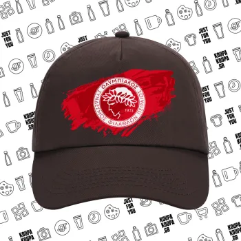 Olympiacos F.C., Adult Baseball Cap, 100% Cotton, Chocolate (COTTON, ADULT, UNISEX, ONE SIZE)