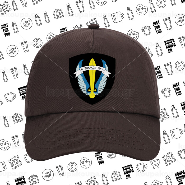 Έμβλημα Μονάδων Καταδρομών Ο Τολμων Νικα - Λοκ, Adult Baseball Cap, 100% Cotton, Chocolate (COTTON, ADULT, UNISEX, ONE SIZE)