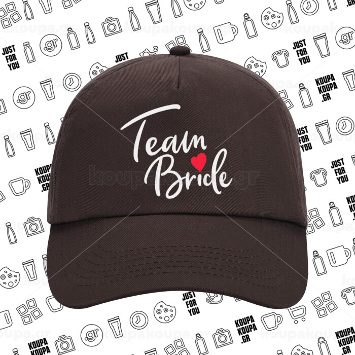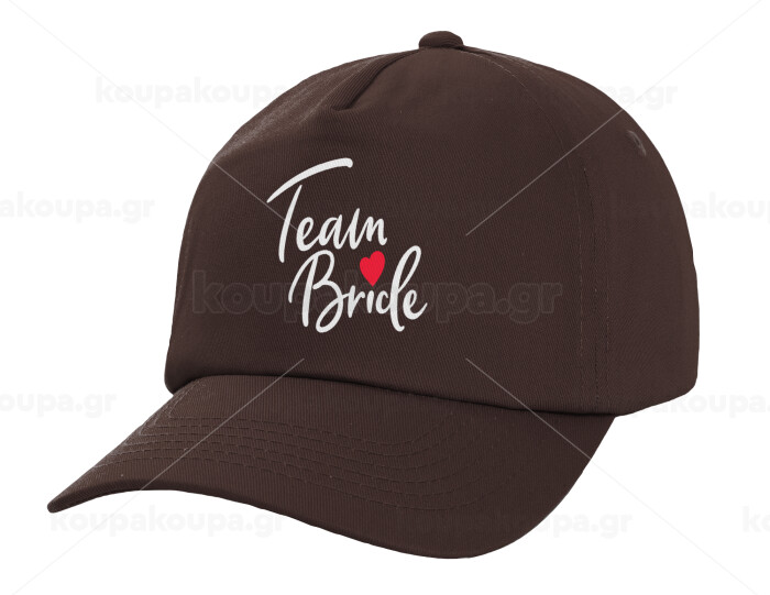 Team Bride red heart, Adult Baseball Cap, 100% Cotton, Chocolate (COTTON, ADULT, UNISEX, ONE SIZE)
