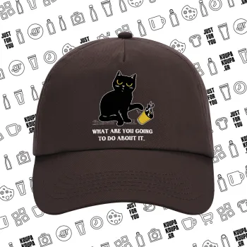 CAT, what are you going to do about it!, Adult Baseball Cap, 100% Cotton, Chocolate (COTTON, ADULT, UNISEX, ONE SIZE)