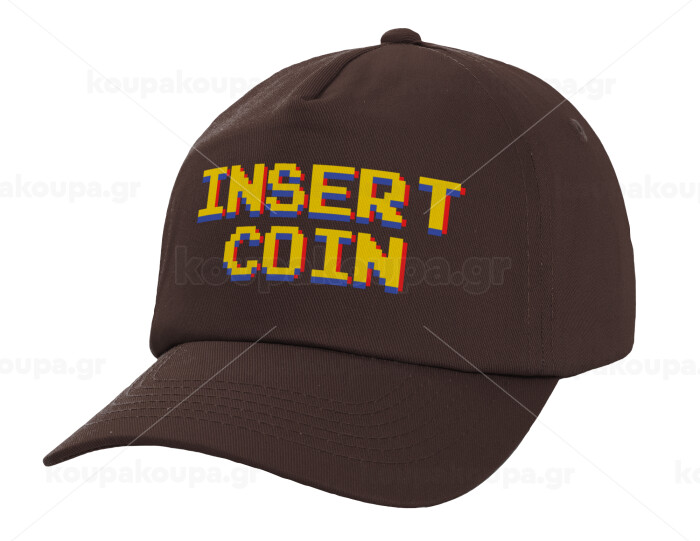 Insert coin!!!, Adult Baseball Cap, 100% Cotton, Chocolate (COTTON, ADULT, UNISEX, ONE SIZE)