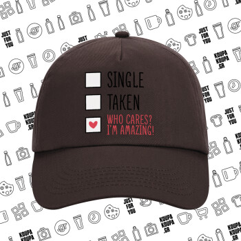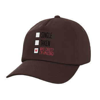 Single, Taken, Who cares i'm amazing, Adult Baseball Cap, 100% Cotton, Chocolate (COTTON, ADULT, UNISEX, ONE SIZE)