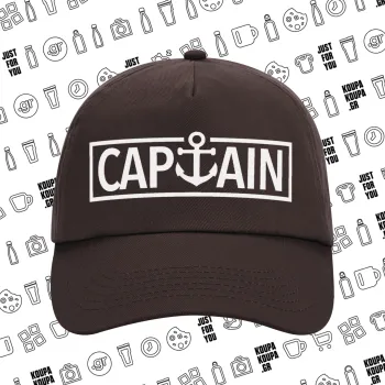 CAPTAIN, Adult Baseball Cap, 100% Cotton, Chocolate (COTTON, ADULT, UNISEX, ONE SIZE)