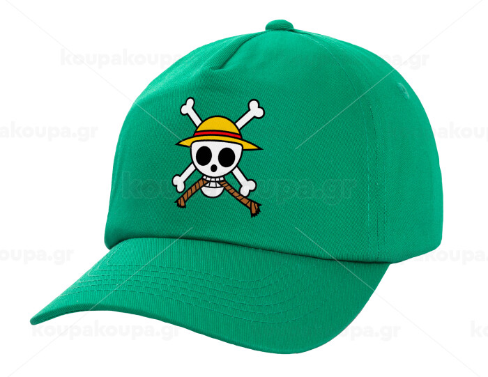 Onepiece skull, Adult Baseball Cap, 100% Cotton, Green (COTTON, ADULT, UNISEX, ONE SIZE)