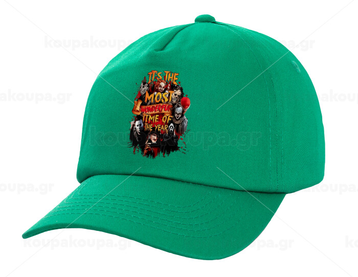 Halloween it's most wonderful time of the year, Adult Baseball Cap, 100% Cotton, Green (COTTON, ADULT, UNISEX, ONE SIZE)