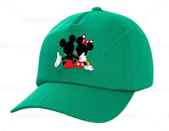 mickey and minnie hags, Adult Baseball Cap, 100% Cotton, Green (COTTON, ADULT, UNISEX, ONE SIZE)