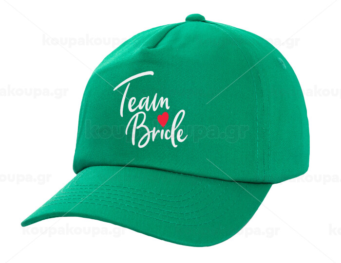 Team Bride red heart, Adult Baseball Cap, 100% Cotton, Green (COTTON, ADULT, UNISEX, ONE SIZE)